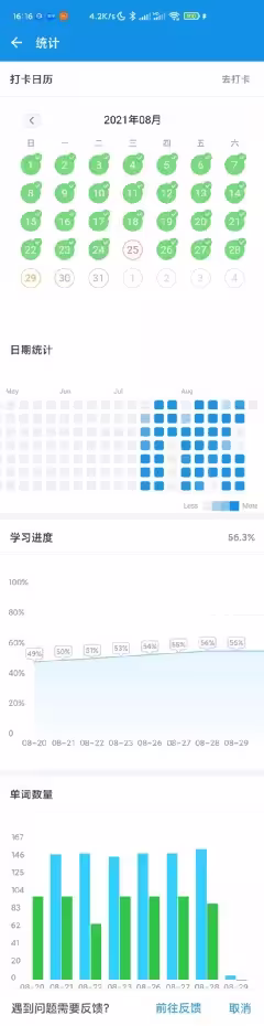 ③学习进度可视化,方便查看学习记录,新词旧词数量;