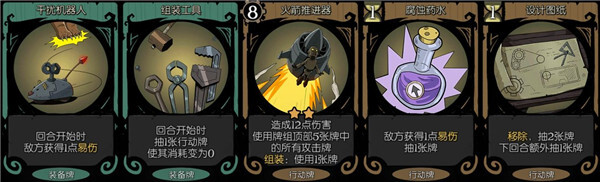易伤主要是为了配合弱点侦查机抽牌,提升伤害是次要的。干扰机器人和腐蚀药水目的相同,白送的干扰机器人和腐蚀药水两者选其中一张就行。