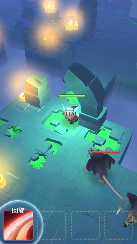 1、游戏采用竖版模式,玩家将操控骑士在地下城中展开无尽的探险,去击败骷髅、狼人和强大的BOSS。